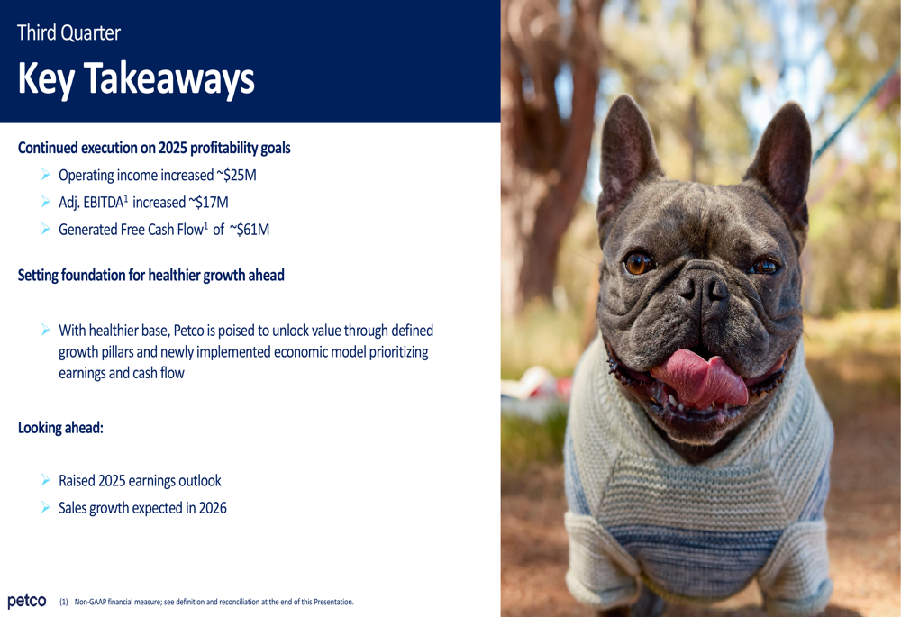 A Petco Health and Wellness Company Inc. (NASDAQ:WOOF) apresentou os resultados financeiros do terceiro trimestre de 2025 em 25 de novembro, revelando melhorias significativas na lucratividade, apesar dos desafios contínuos na receita. As ações do varejista de produtos para animais de estimação responderam positivamente ao anúncio dos resultados, subindo 6,45% para fechar em US$ 2,97, à medida que os investidores receberam bem o progresso da empresa em sua estratégia de transformação.