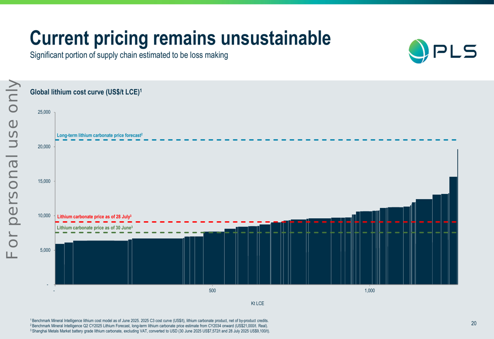 "O aumento da capacidade da planta P1000 Pilgan foi concluído, apoiando maior volume de produção e menores custos operacionais unitários em comparação ao trimestre anterior", afirmou a empresa em sua apresentação. "Nossa instalação de triagem de minério agora permite maior uso de material de contato de menor teor, acessando mais unidades de lítia da mina."