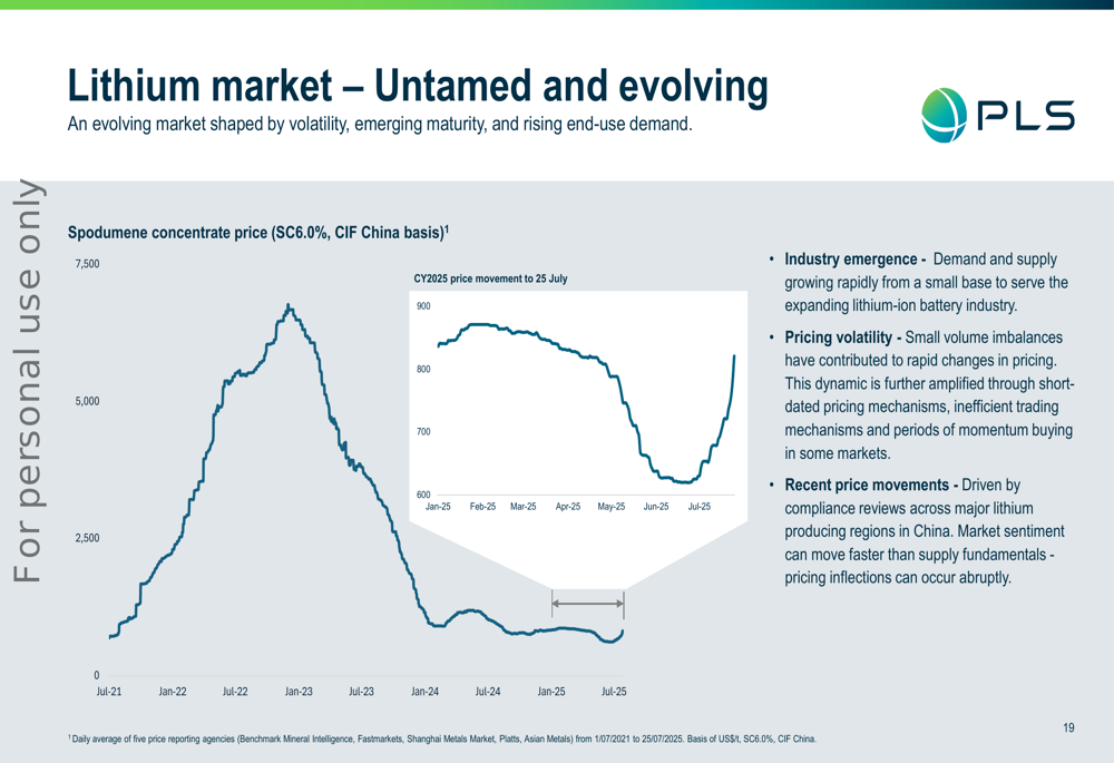 A Pilbara Minerals caracterizou o mercado de lítio como "indomável e em evolução", com volatilidade significativa de preços desde 2021: