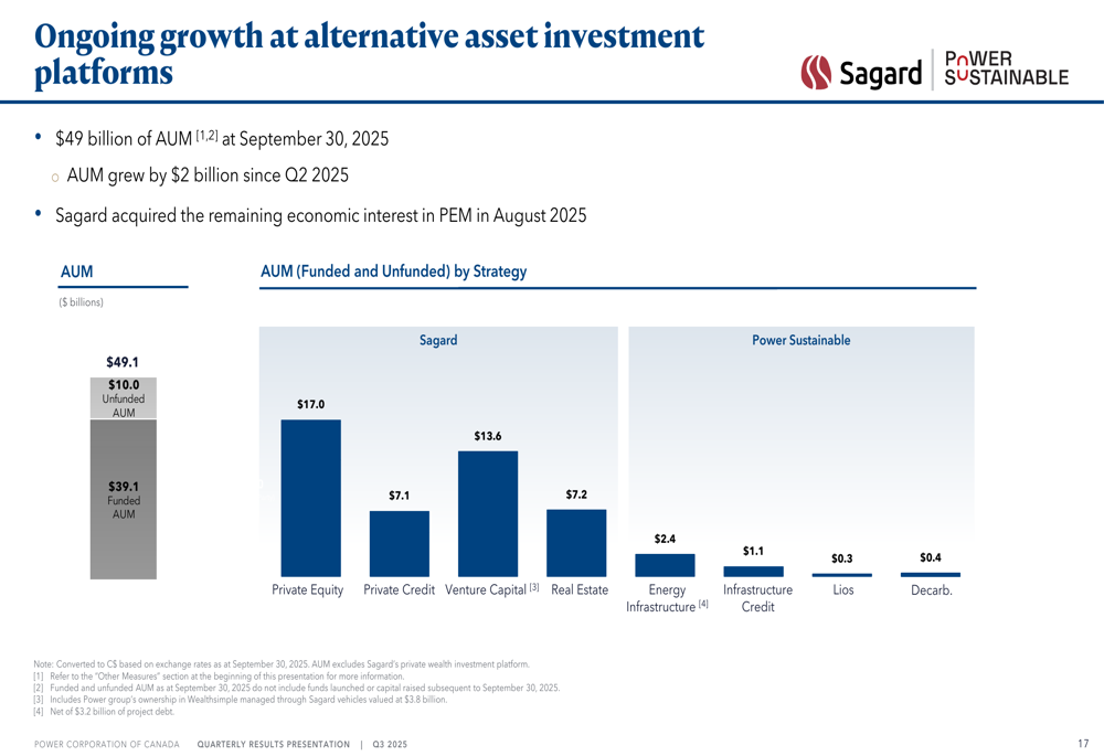 A Sagard, gestora de ativos alternativos da Power Corporation, continua a expandir sua escala por meio de aquisições estratégicas e parcerias. Desenvolvimentos notáveis incluem a combinação da Sagard com a Unigestion para criar uma líder global em gestão de ativos, e uma parceria com a Baird para acelerar a expansão no canal de riqueza dos EUA.