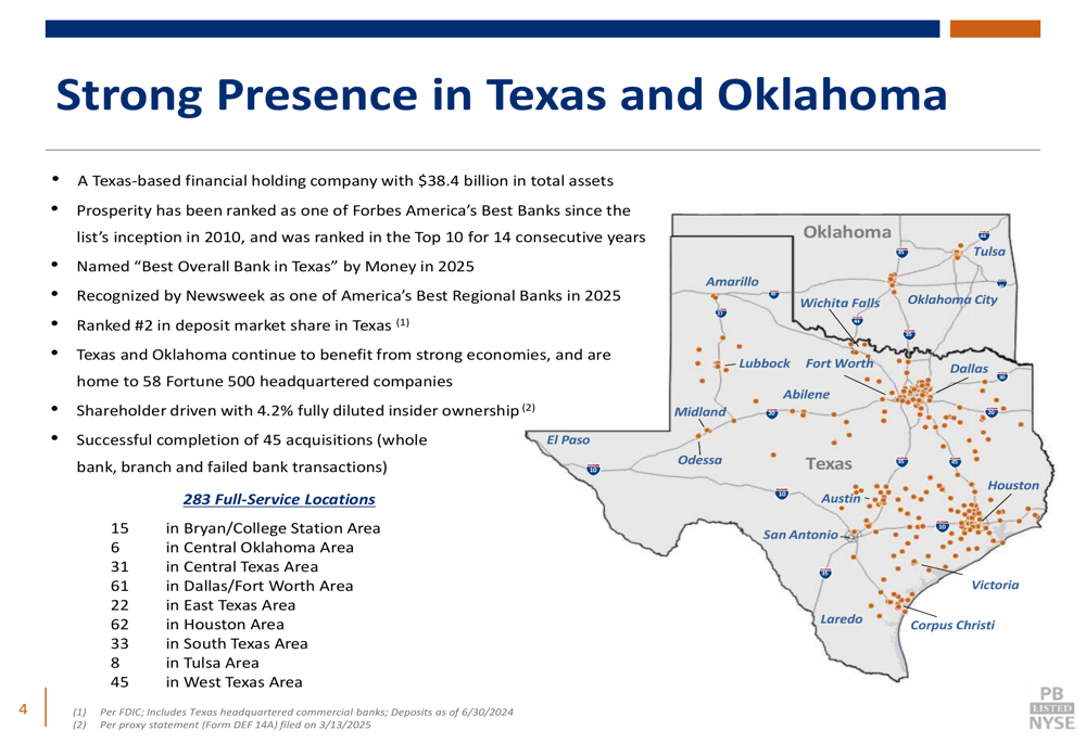 Espera-se que a fusão com o American Bank seja concluída até o final de 2025, sujeita a aprovações regulatórias e condições habituais de fechamento. Esta aquisição alinha-se com a estratégia da Prosperity de expandir em mercados texanos de alto crescimento, particularmente San Antonio.