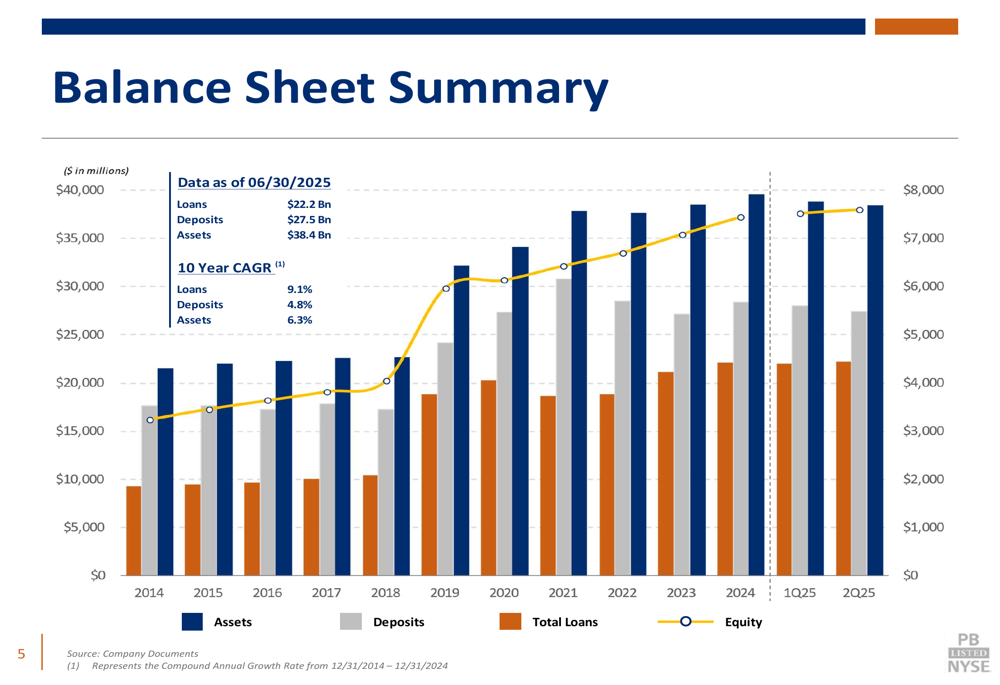 Como mostrado no gráfico a seguir do resumo do balanço patrimonial do banco, a Prosperity manteve crescimento consistente em métricas-chave: