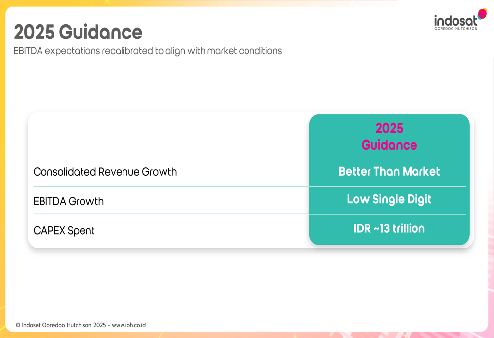 Para o ano completo de 2025, a Indosat mantém sua orientação de crescimento de receita "melhor que o mercado", embora a transcrição da teleconferência de resultados sugira uma recepção cautelosa dos investidores a esta afirmação, dado o desempenho atual. A empresa projeta um crescimento de EBITDA de baixo dígito único e planeja gastos totais de CAPEX de aproximadamente 13 trilhões de IDR.