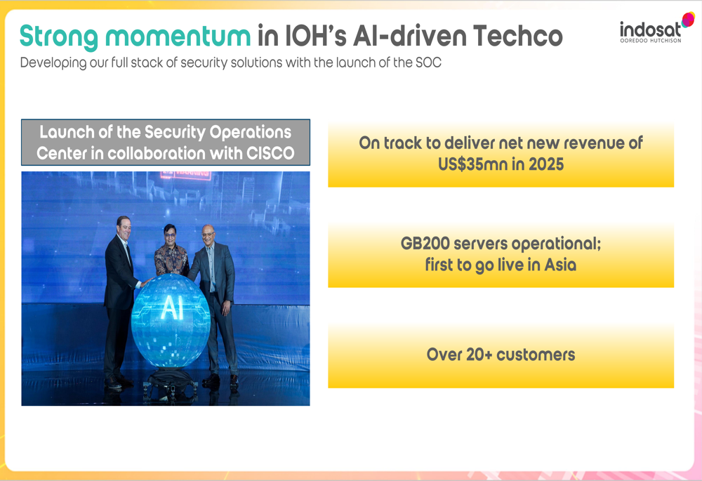 A empresa também lançou um Centro de Operações de Segurança com a Cisco, relatando que suas iniciativas de empresa de tecnologia estão no caminho certo para entregar US$ 35 milhões em nova receita em 2025. A Indosat afirma ser a primeira na Ásia a ter servidores GB200 operacionais, com mais de 20 clientes já utilizando esses serviços avançados.