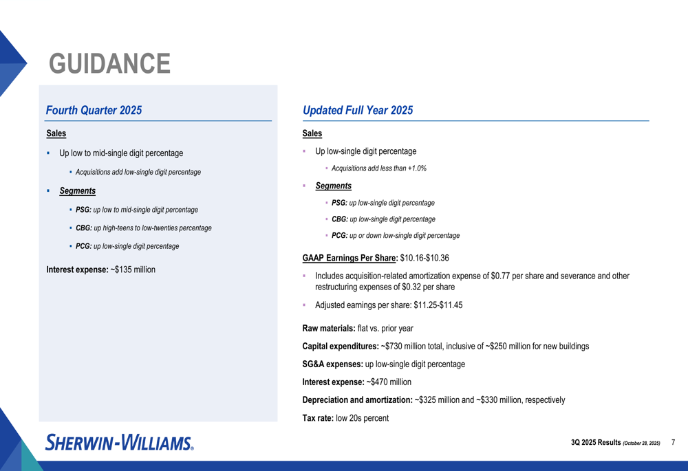 A Sherwin-Williams forneceu orientação atualizada para o restante de 2025 e ofereceu alguma perspectiva para 2026:
