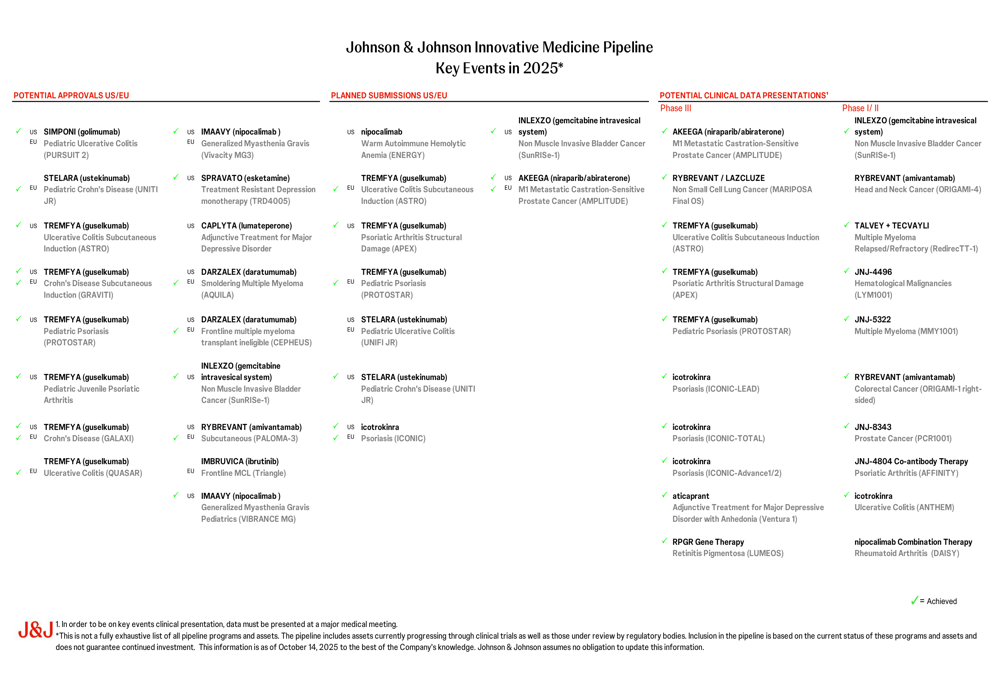 O pipeline de Medicina Inovadora da empresa mostra numerosas aprovações potenciais, submissões e apresentações de dados clínicos para 2025: