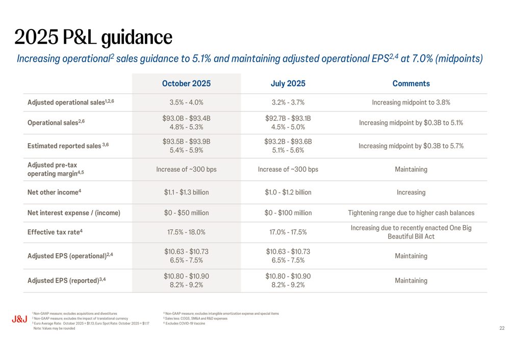 A Johnson & Johnson (Nova York:JNJ) apresentou seus resultados do terceiro trimestre de 2025 em 14 de outubro, demonstrando desempenho robusto na maioria dos segmentos de negócios. O gigante do setor de saúde reportou crescimento significativo nos lucros e elevou suas projeções para o ano, além de anunciar planos para separar seu negócio de Ortopedia para aguçar o foco estratégico.