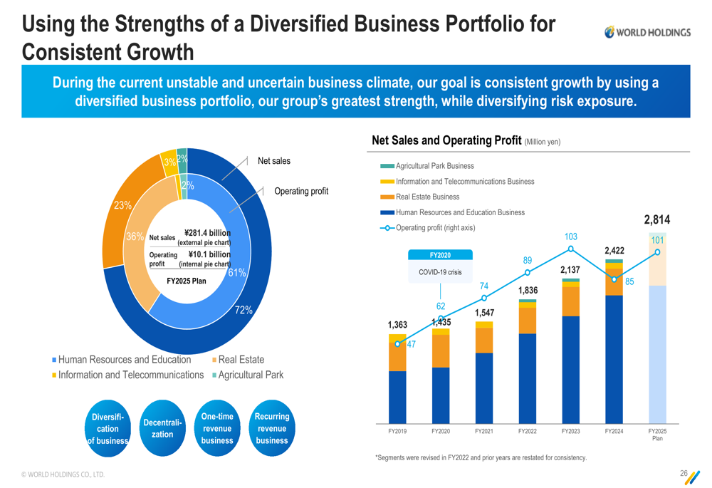A World Holdings enfatizou que seu portfólio diversificado de negócios continua sendo seu maior ponto forte, permitindo crescimento consistente enquanto diversifica a exposição ao risco em um ambiente de negócios incerto: