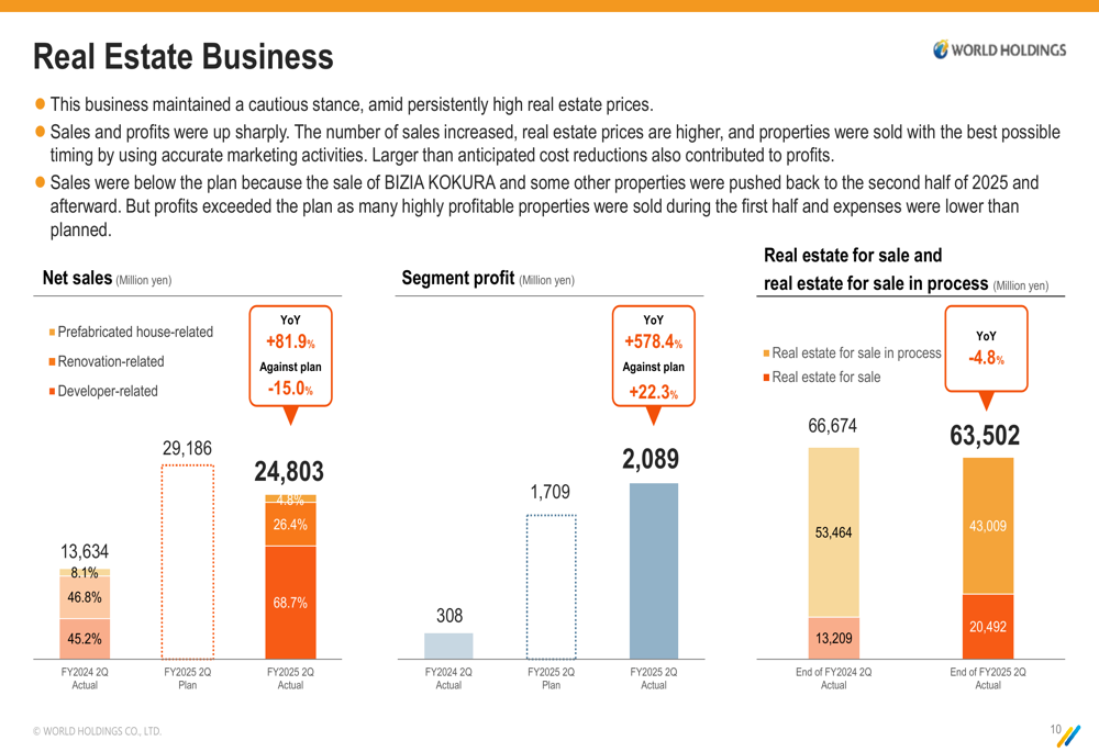 O Negócio Imobiliário entregou resultados excepcionais com vendas líquidas aumentando 81,9% em relação ao ano anterior para 24.803 milhões de ienes e o lucro do segmento disparando impressionantes 578,4% para 2.089 milhões de ienes. Esta melhoria dramática foi atribuída ao aumento do volume de vendas, preços imobiliários mais altos e estratégias de marketing eficazes:
