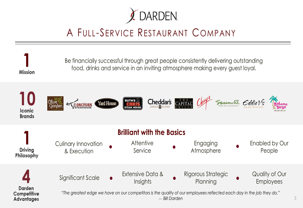 A Darden continua a aproveitar seu portfólio de dez marcas de restaurantes, enfatizando a inovação culinária e a excelência no serviço como vantagens competitivas fundamentais. A empresa destacou sua escala significativa, amplos insights de dados e planejamento estratégico rigoroso como diferenciais-chave no competitivo cenário de restaurantes.