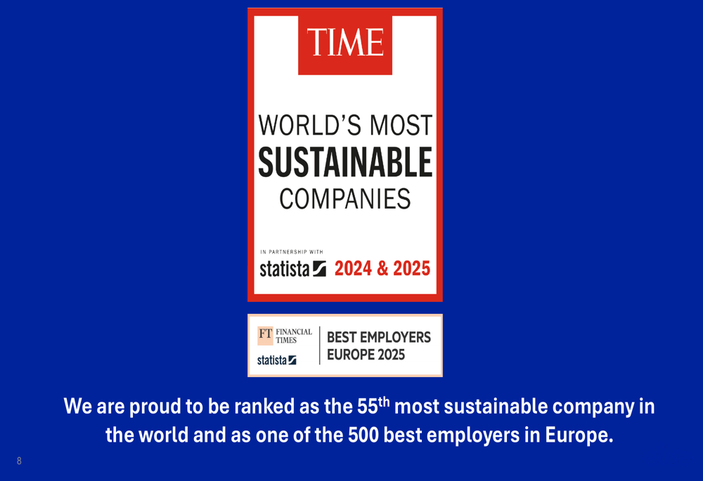 A seguinte imagem destaca essas conquistas de sustentabilidade e reconhecimento como empregador: