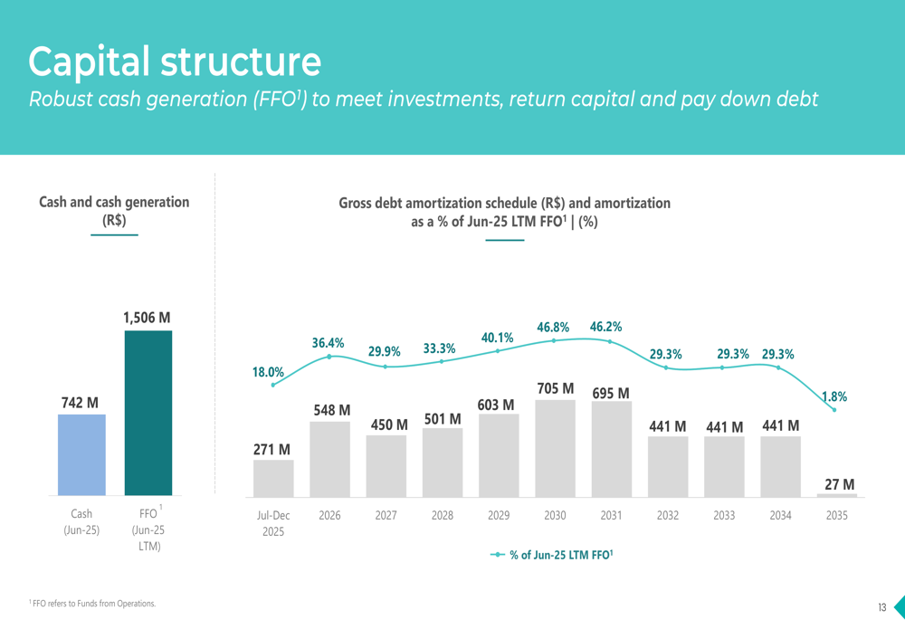 A Multiplan manteve uma estrutura de capital estável enquanto entregava retornos significativos aos acionistas. A relação dívida líquida/EBITDA da empresa está em 2,27x em junho de 2025, um nível que proporciona flexibilidade financeira enquanto mantém uma alavancagem conservadora.