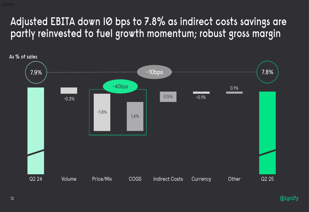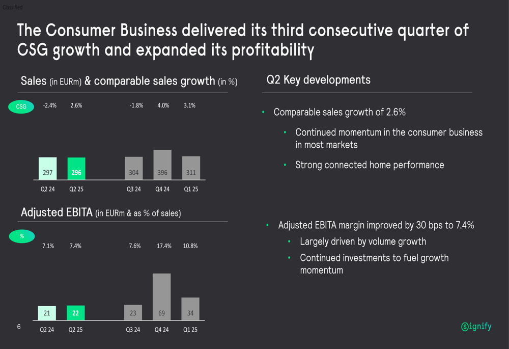 A Signify reportou vendas nominais de US$ 1.418 milhões para o 2º tri de 2025, representando uma queda de 4,4% em comparação com o mesmo período do ano anterior. No entanto, excluindo o negócio Convencional em rápido declínio, a empresa alcançou um modesto crescimento de vendas comparáveis de 0,8%.