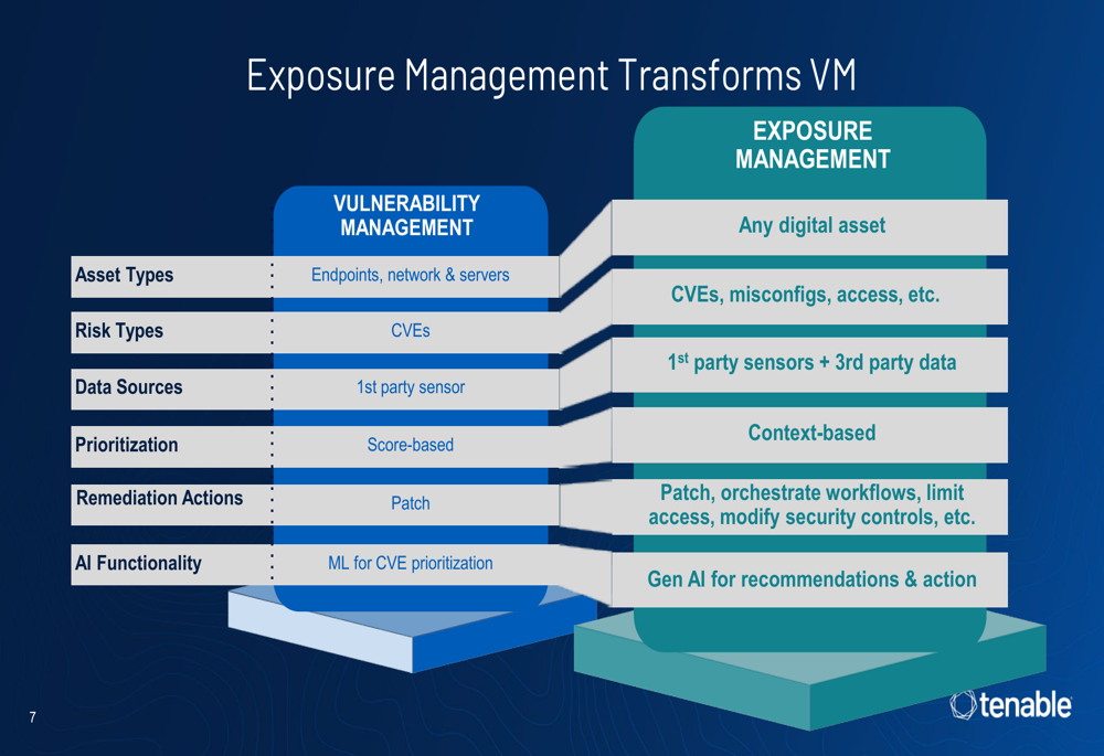 No centro da estratégia da Tenable está sua evolução do gerenciamento tradicional de vulnerabilidades para o gerenciamento abrangente de exposição. A empresa define o gerenciamento de exposição como uma abordagem holística que engloba todos os ativos digitais, tipos de risco e ações de remediação, impulsionada por capacidades avançadas de IA.