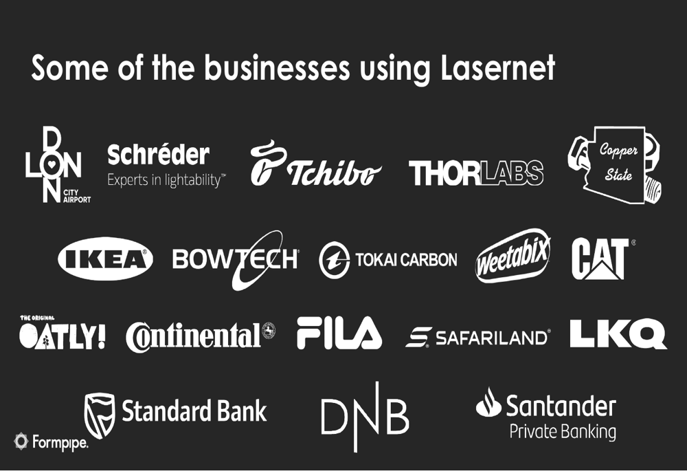 Após o desinvestimento, a FormPipe se concentrará em construir a partir de sua forte posição no negócio Lasernet, que atende mais de 1.300 clientes em todo o mundo em múltiplos setores. A solução SaaS completa da empresa integra-se com sistemas-chave, incluindo Dynamics 365, Temenos e várias outras plataformas através de conexões REST API.