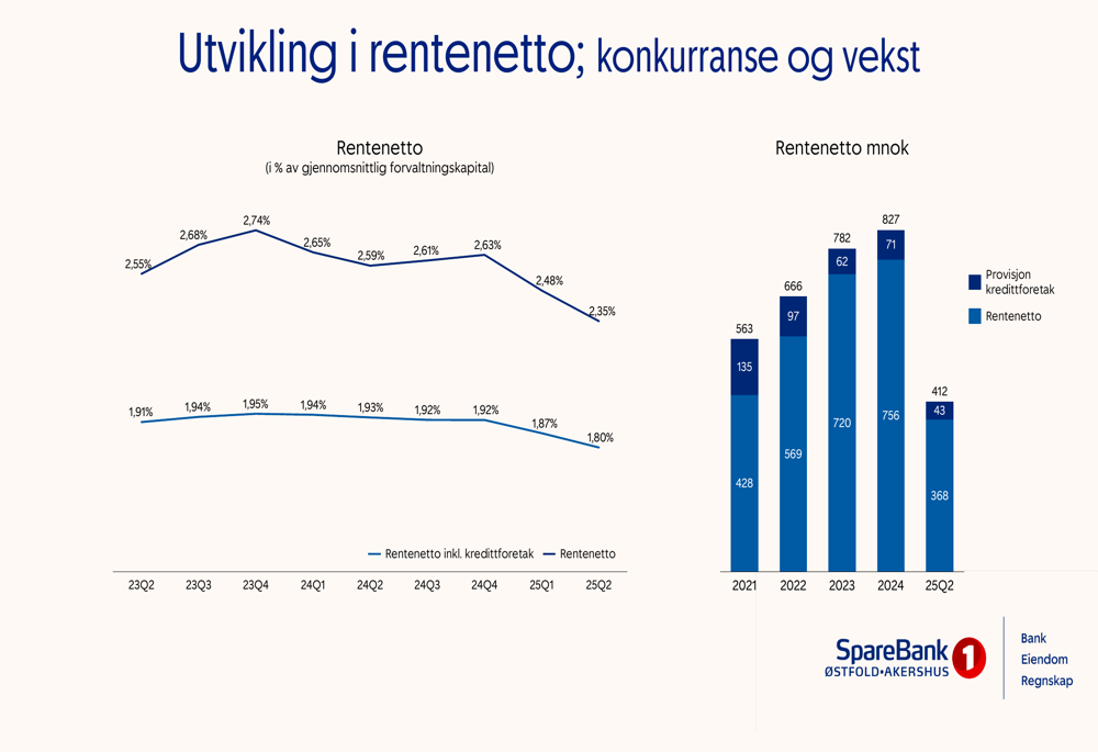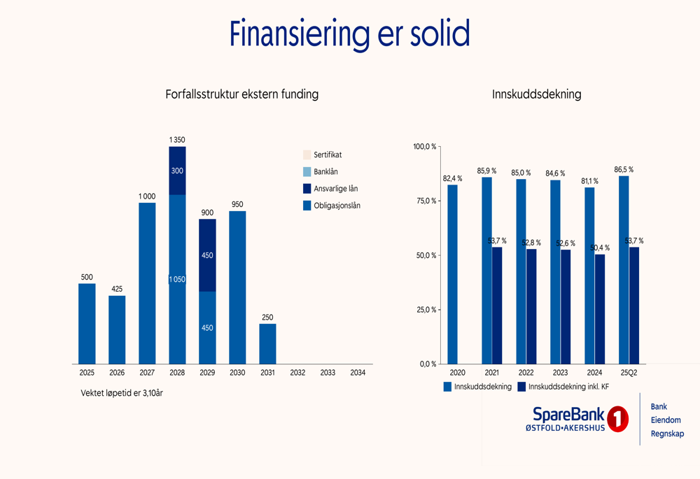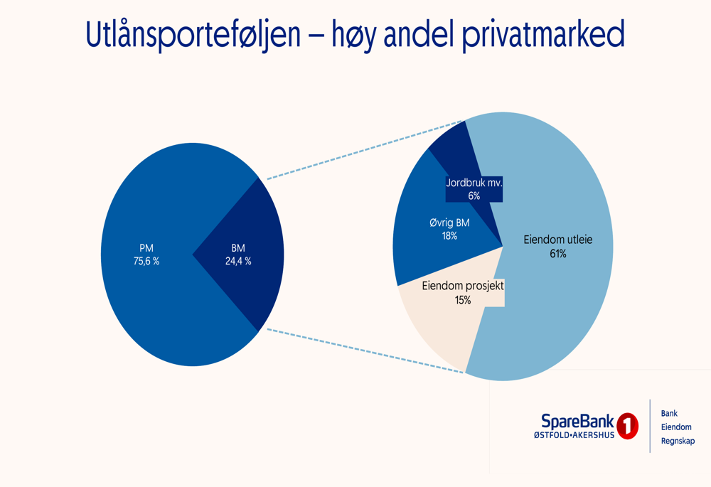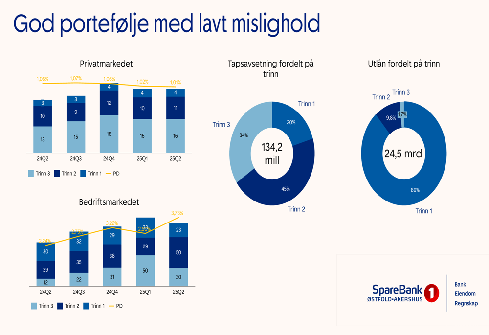 O SpareBank 1 Østfold Akershus reportou forte crescimento de empréstimos tanto nos segmentos de mercado privado quanto empresarial. O crescimento de empréstimos em 12 meses no mercado privado foi de 7,8%, enquanto o mercado empresarial viu um crescimento de 7,9%. As taxas de crescimento trimestral para o 2º tri de 2025 foram de 1,5% para o mercado privado e 3,4% para o mercado empresarial.