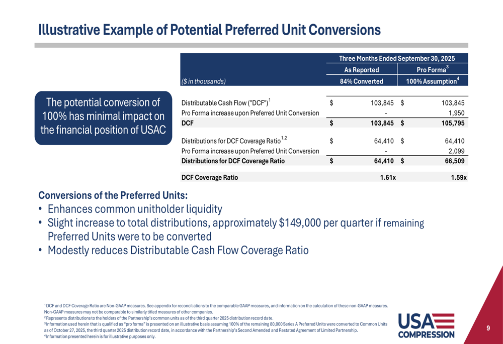 A conversão melhora a liquidez dos detentores de unidades comuns enquanto reduz apenas modestamente o índice de cobertura do fluxo de caixa distribuível de 1,61x para 1,59x com base nos números do 3º tri 2025.