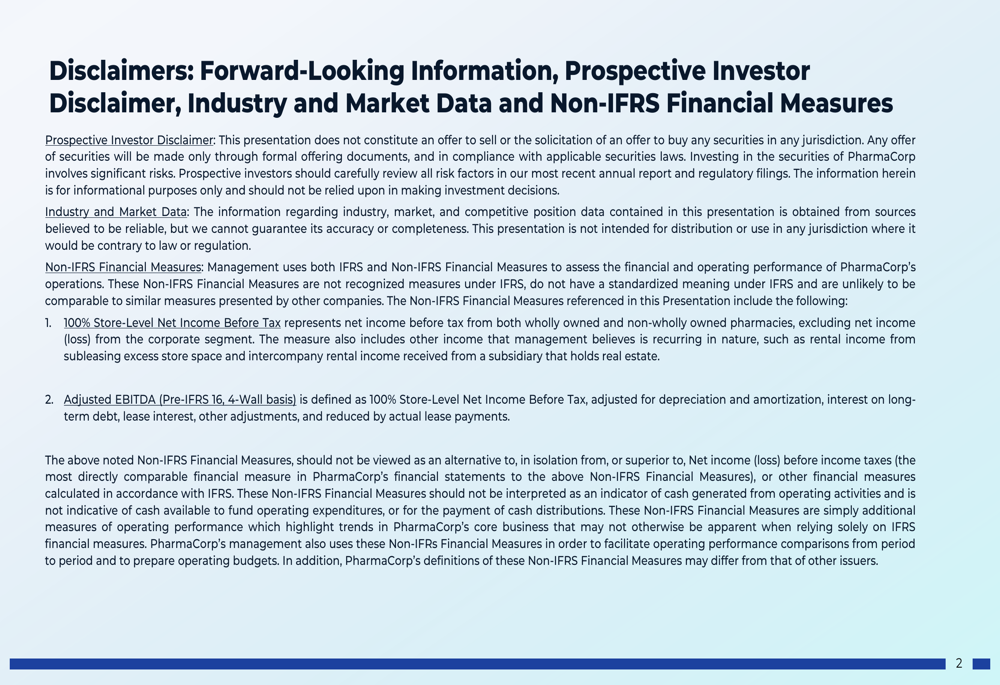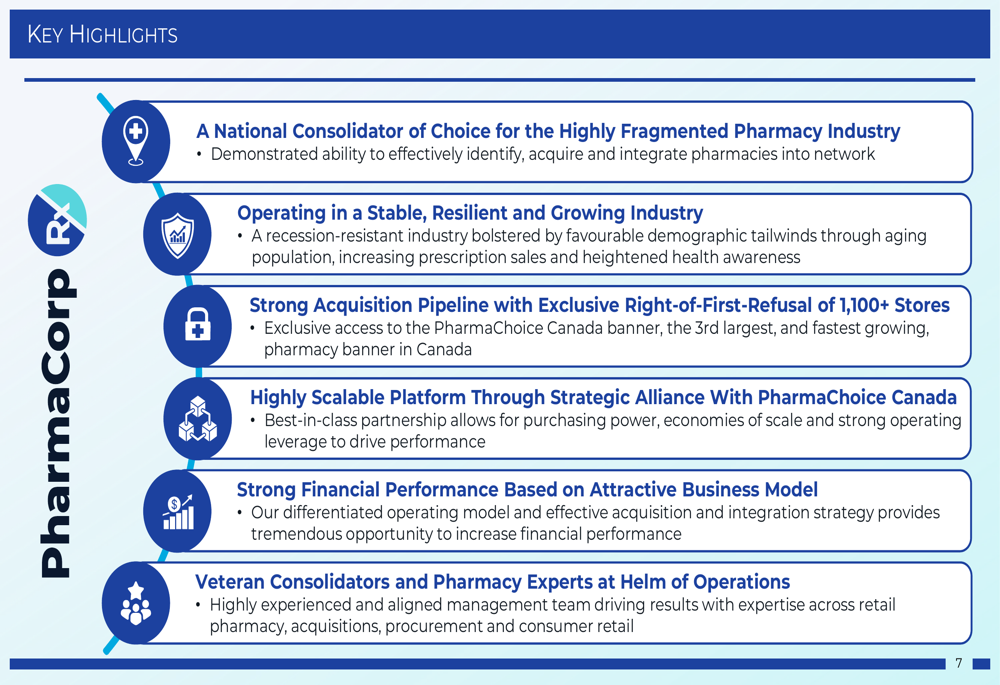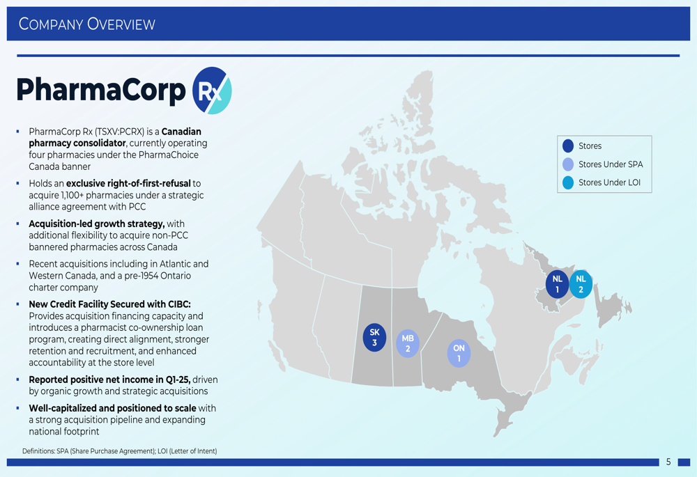 A empresa garantiu uma nova linha de crédito com o CIBC que fornece capacidade de financiamento para aquisições e apoia seu programa de empréstimos para copropriedade de farmacêuticos. Com um balanço forte, pipeline de aquisições estabelecido e capacidade demonstrada de melhorar o desempenho de lojas comparáveis, a PharmaCorp parece bem posicionada para continuar executando sua estratégia de consolidação no setor farmacêutico canadense.