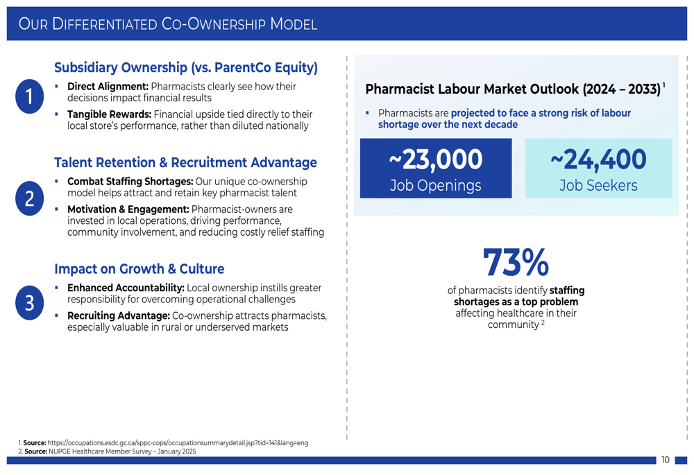 A estratégia de crescimento da empresa aproveita esse acordo ROFR, mantendo flexibilidade para adquirir farmácias não associadas à PCC. Aquisições recentes incluem locais no Atlântico e no Oeste do Canadá, expandindo a presença geográfica da empresa.