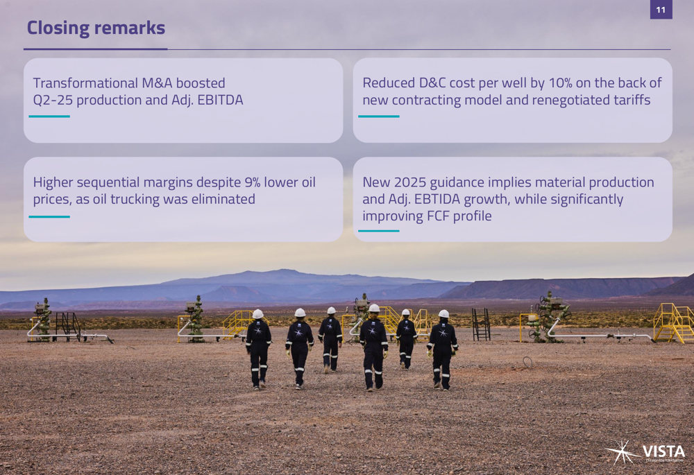 A transformação da Vista na maior produtora independente de petróleo da Argentina e principal exportadora de petróleo posiciona a empresa para um crescimento contínuo nos próximos anos. Com sua base de produção de baixo custo, orientação crescente para exportação e alocação disciplinada de capital, a Vista parece bem posicionada para cumprir seus ambiciosos objetivos de crescimento para 2025 e além.