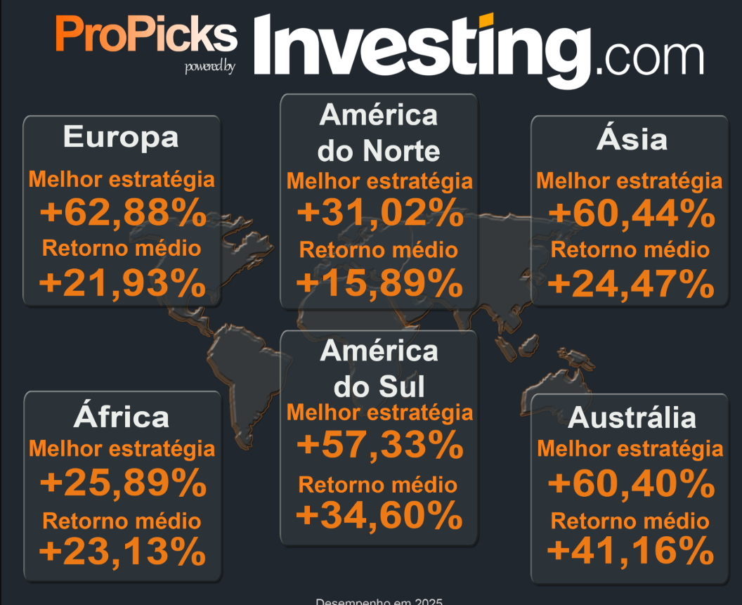 Embora as ações de tecnologia tenham subido +31,02%, as melhores estratégias com IA na Europa, Ásia, América do Sul e Austrália renderam até o dobro.