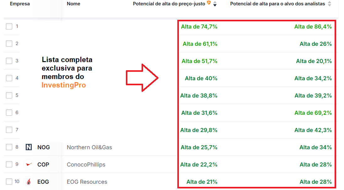 Com base nesses filtros, o filtro do Investing identificou 10 ações promissoras no setor energético.