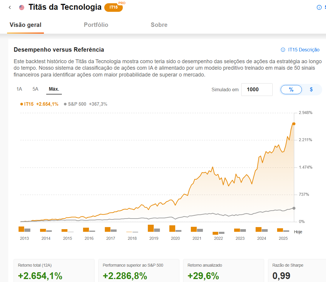 Nossos testes de longo prazo confirmam: seguir e avaliar a estratégia da IA, com base no que faz sentido para o seu portfólio, é o caminho mais seguro para gerar riqueza sustentável no longo prazo.