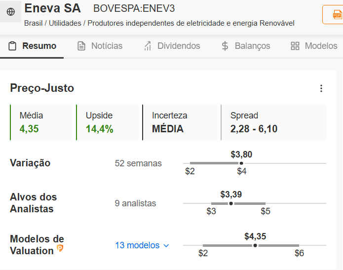 De acordo com o InvestingPro, plataforma premium de dados e análises com uso de inteligência do Investing.com, a Eneva tem expectativa de lucro líquido maior neste ano, com analistas prevendo boa rentabilidade. O preço-justo da plataforma para a Eneva indica um potencial de alta de 14,3% frente à cotação atual. O cálculo é feito com base em 13 modelos consagrados de valuation, com grau de incerteza média.